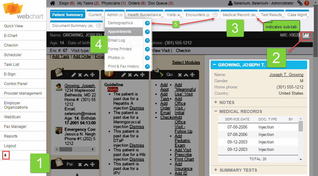 The following page provides details on the correct terminology for screens and items that appear in an MIE (WebChart, Enterprise Health) system.